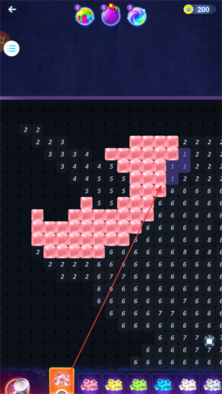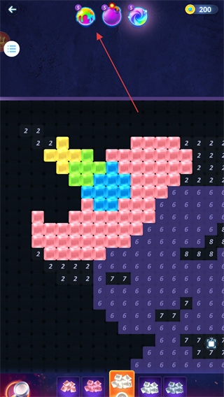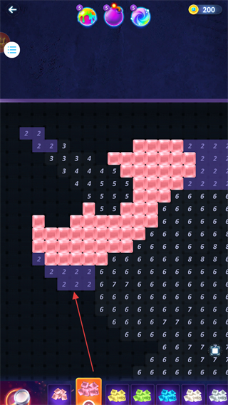 1、进入游戏,观察界面中粉色的宝石方阵,以及方阵旁标注的数字,这些数字代表对应行列需要消除的宝石数量。