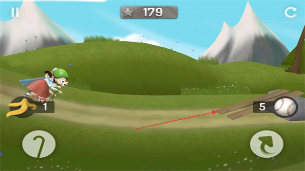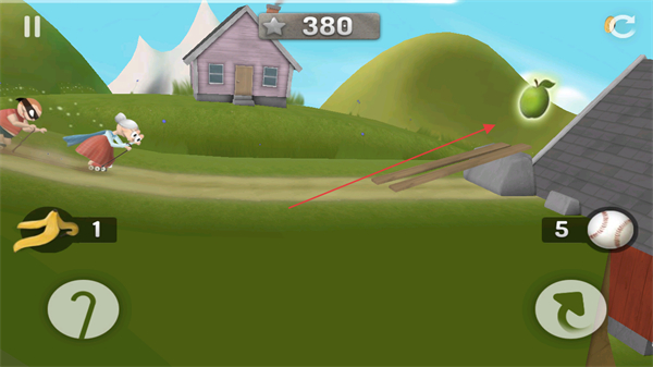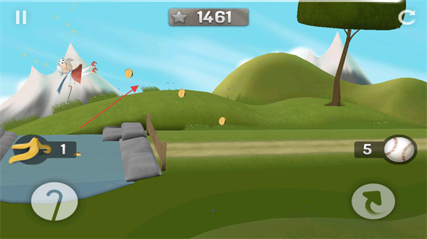 2、途中尽可能收集金币,增加分数,同时留意左下角香蕉1和右下角棒球5等道具数量。