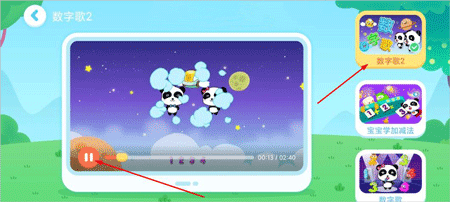 1、打开数学农场,进入主页面,中间播放键可以设置学习阶段和播放数字儿歌;