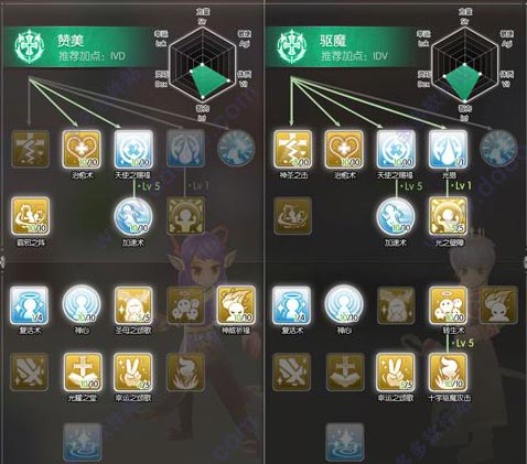 从上图的加点方案中可以看出,两个方案分别是赞美牧师IVD和驱魔牧师IDV: