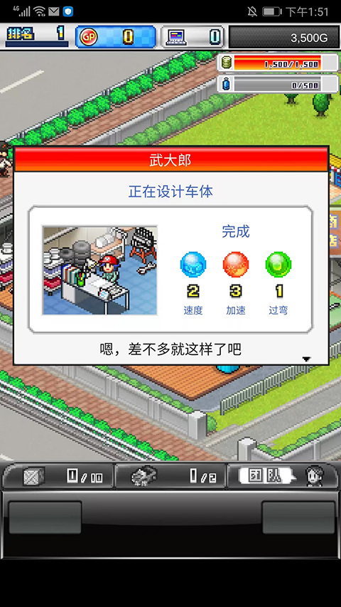 所以在雇佣人才组成团队的时候,大家可以先有个初步构想,如一队主魅力值,擅长宣传和研究点数的累积;二队技术优先,负责赛车的开发和部件改良。