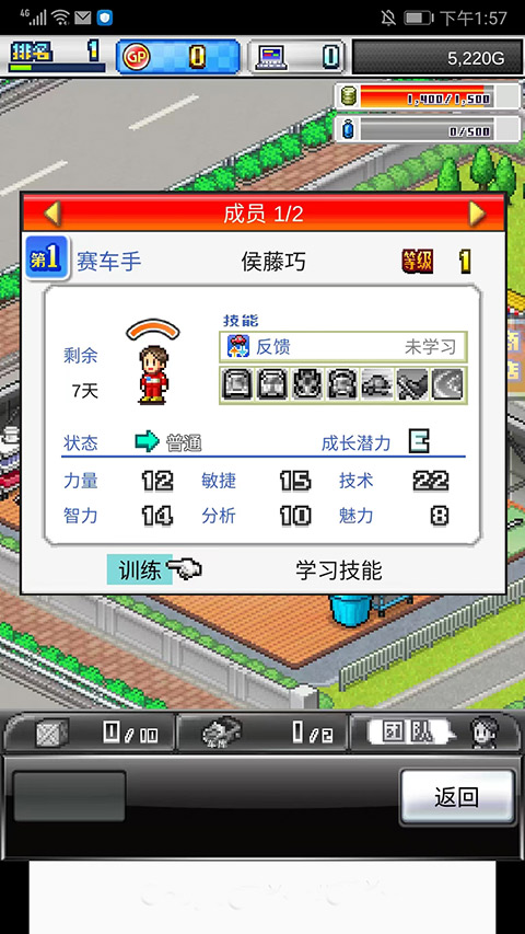 14、除了制造性能好的赛车,还可以通过训练赛车手的能力,让在下次的比赛中获得更好的名次,点击【赛车手】,选择【训练】选项,