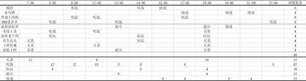 所以 最好把买菜的人、看病的人、去超市的人分布得相对均匀一点 尽量分散开 这样可能等四楼的人下楼的时候一楼就已经买完菜啦 比如…