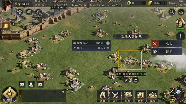 1、攻占关卡、县城、郡府、州府及洛阳需要占领【攻城大营地基】,占领后可修建【攻城大营】,选择对应城池进行宣战并集结部队。攻占任意城门即可占领城池。