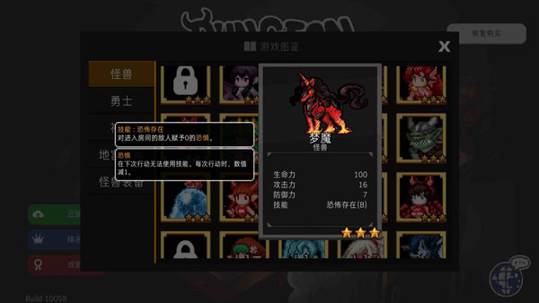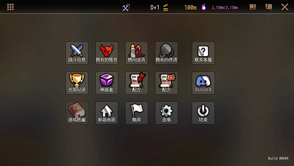 4、游戏的菜单功能十分丰富,支持查看战斗信息、拥有的怪兽、配方、神器盒等等;