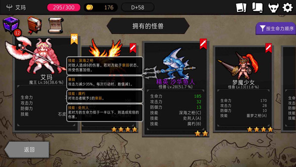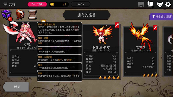 如果魔王扛怪开始有压力了,由于技能还没打完,找几个干净的(只有第一个固有技能)等级高点的怪给魔王吃。