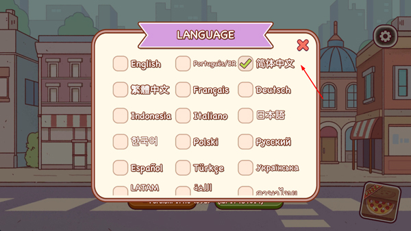 2、接着点击语言设置,找到简体中文,点击确定即可设置游戏语言为中文。