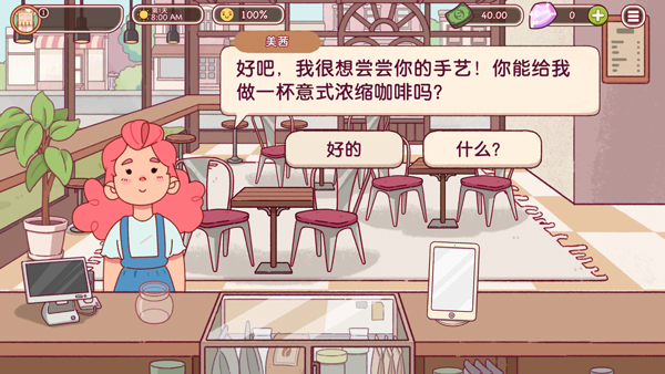 3、设置完中文后,点击开始,玩家需要根据顾客的要求来制作咖啡;