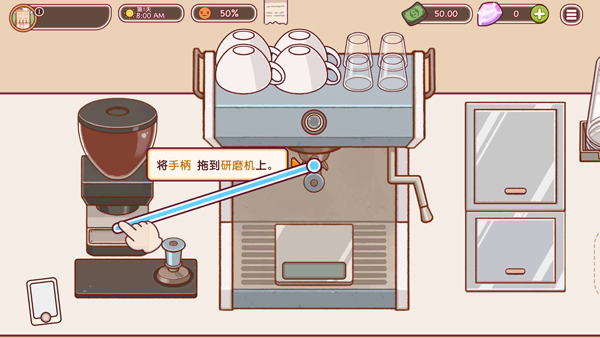 4、游戏正式开始前会有个简单的新手引导,跟随引导进行操作,首先将手柄拖到研磨机上;