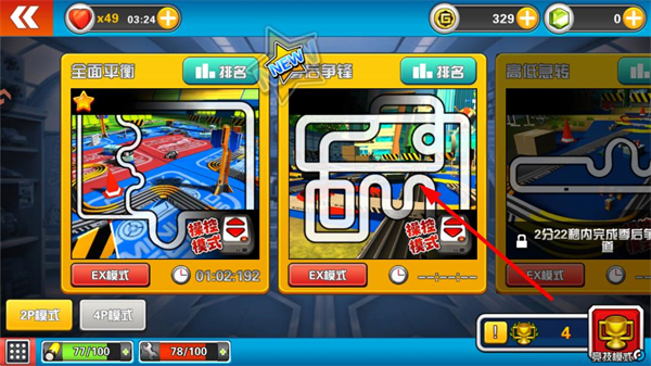 2、点击手动赛后,进入赛道选择界面,这里有不同难度和地形的赛道,新手初期可以选择难度相对较低的赛道。