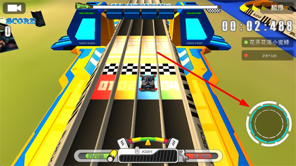 4、游戏界面右下方有操控按钮,通过它来控制赛车速度,在直道上可以全力加速,在弯道提前减速,让赛车平稳通过弯道,提升比赛成绩。