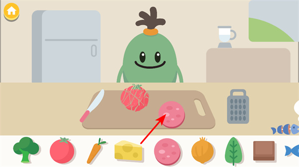 1、选择食材,在食材栏中选择需要的食材,将其放置到砧板上,准备进行烹饪操作。