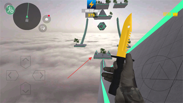 1、用左侧方向键操控角色,准备向空中平台跳跃。