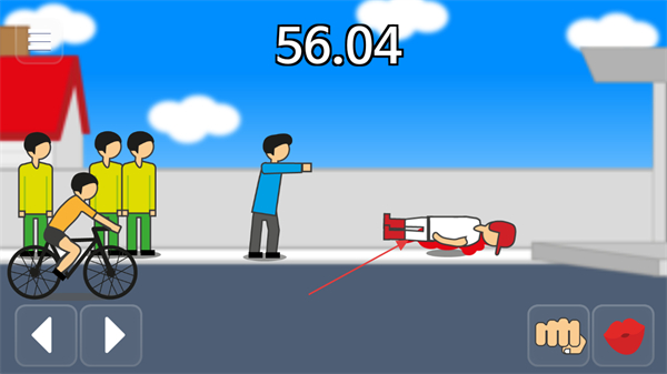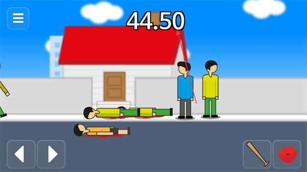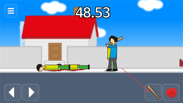 2、屏幕下方有操作按钮如拳头、棒球棍图标,点击按钮操控角色做出相应动作,对场景中的目标进行攻击或互动。