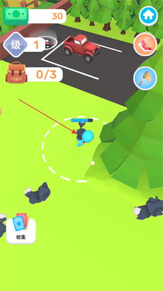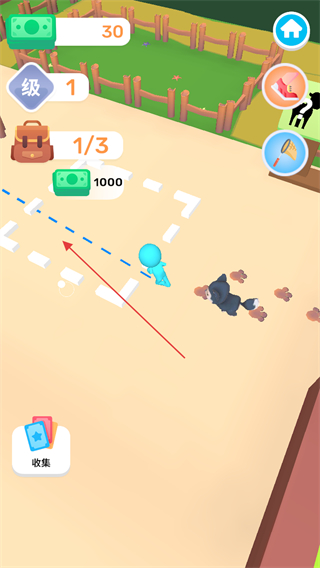 3、留意屏幕上方的任务进度如0/3,收集指定数量的牛。