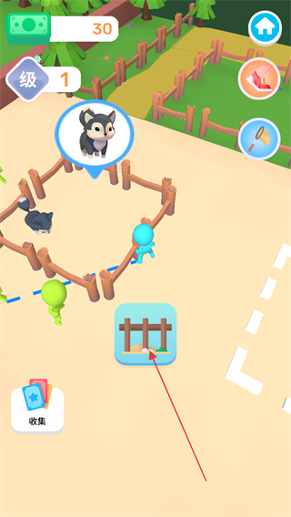 4、收集一定资源如金钱后,使用道具如栅栏圈养抓捕到的牛。