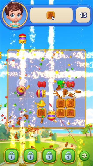4、持续进行消除操作,完成目标数值,解锁下方关卡或获取奖励。