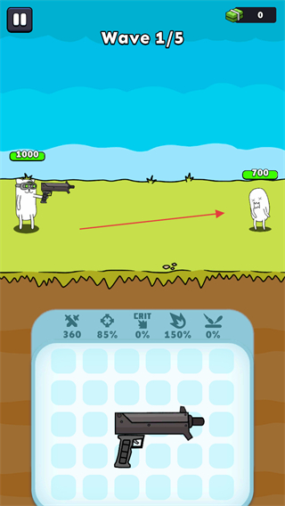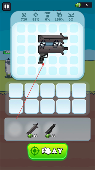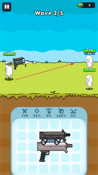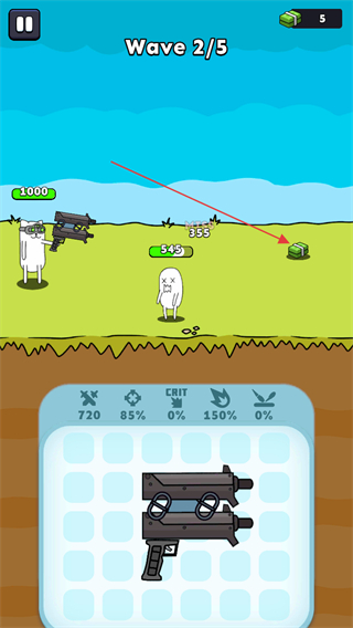 2、赚取金币后,点击下方武器栏购买新武器并放置在格子中。