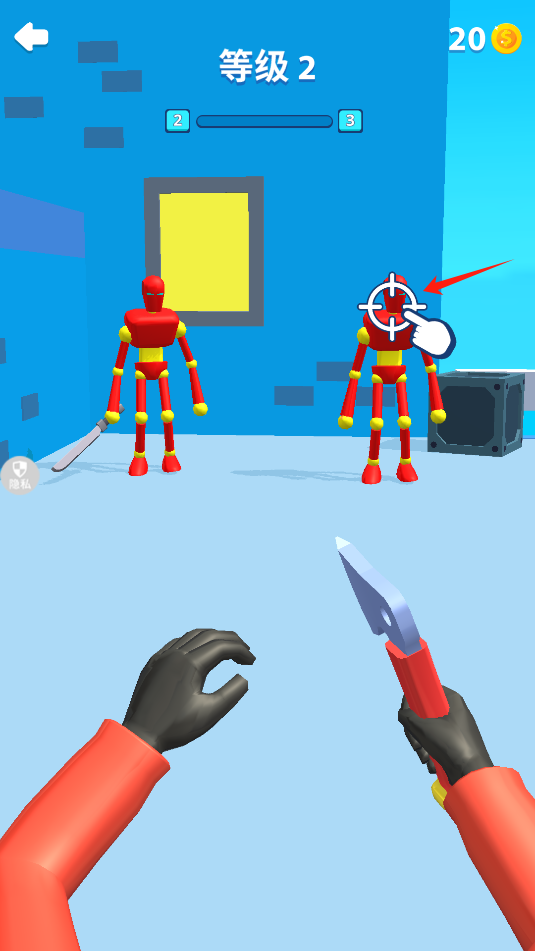 2、游戏中,需瞄准点击头部,就会射出飞刀击中敌人。