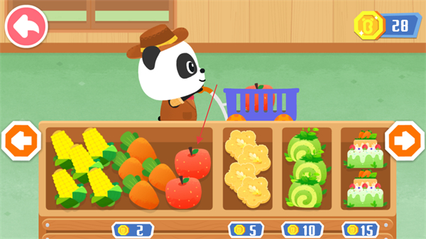 3、选择要购买的果蔬下方标有价格,如2,将其放入购物篮,购买后金币数量会相应减少,购买果蔬可获得金币奖励。