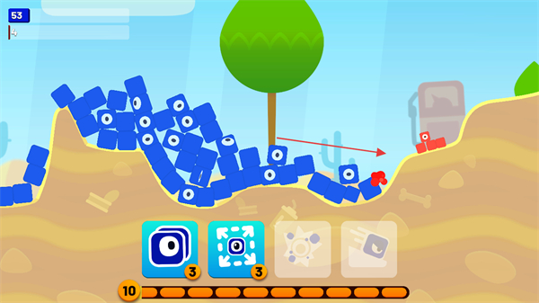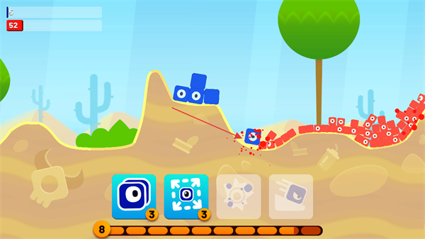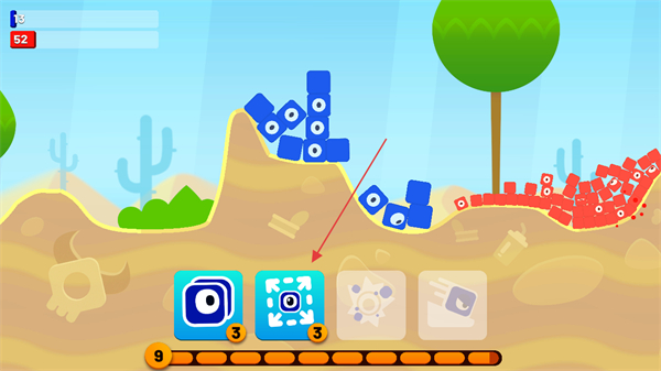 3、合理选择和使用不同技能屏幕下方图标,提升蓝色方块的分裂效果和攻击能力。