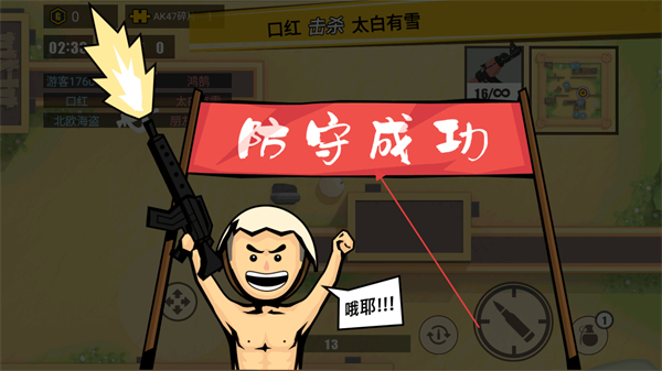 3、注意自身血量屏幕下方绿色进度条,躲避臭蛋反击,持续攻击直至消灭所有臭蛋,达成防守成功。