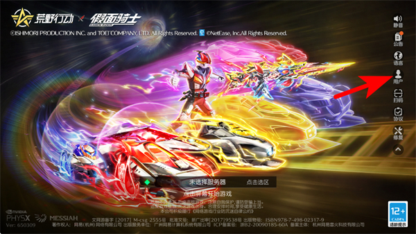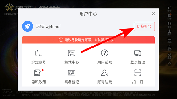 1、在游戏登录的界面,点击右侧账户的按钮,进入用户中心。