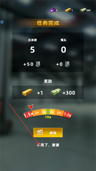 4、消灭所有敌人后,任务完成,查看击杀数等信息,点击领取按钮获取奖励。