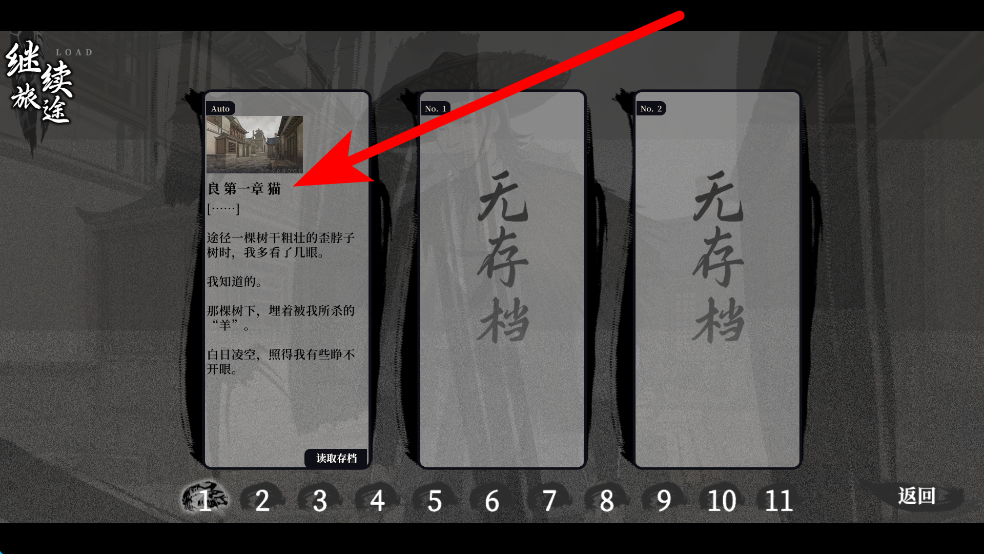 4、可在存档界面,选择已有存档或新开始,若有存档点击读取存档,能继续之前的剧情进度,方便接续体验故事内容。