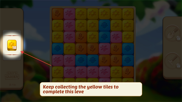 1、进入关卡,留意左侧提示,需收集18块黄色方块来完成本关目标。