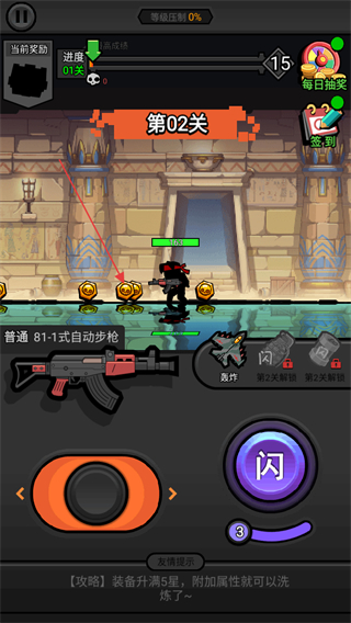 3、推进到第02关,瞄准敌人与金币,保持射击节奏,高效清怪并捡取资源。
