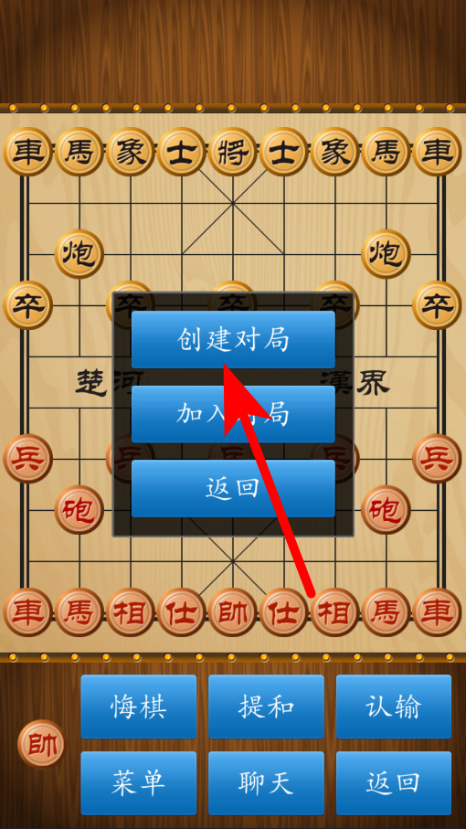 3、在对局相关操作界面,点击创建对局选项,进入创建对局设置界面。