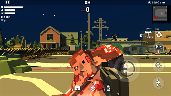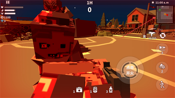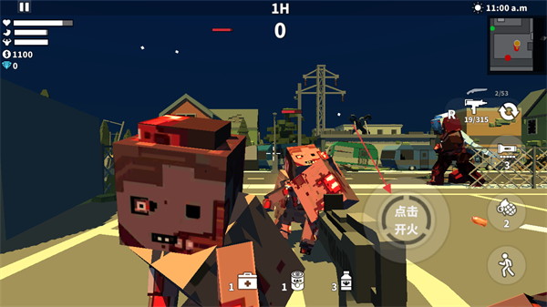 2、僵尸靠近时,点击屏幕右侧点击开火按钮射击,留意子弹数量,及时躲避僵尸攻击。