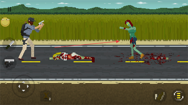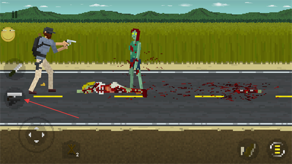 3、移动角色靠近僵尸,持续射击,消灭僵尸后继续推进。
