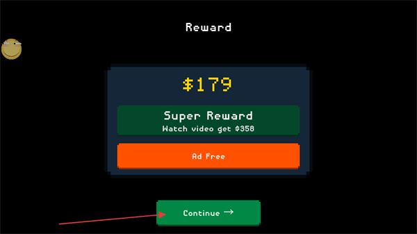 4、战斗结束,点击Continue按钮,领取奖励并继续游戏。