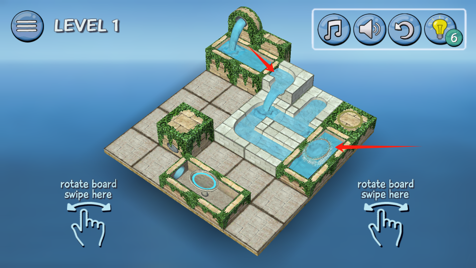 3、游戏里,需移动石块,引导水流顺利到达水槽中。