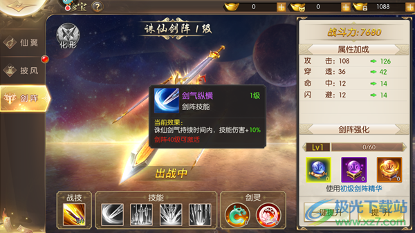 4、剑破苍穹:诛仙剑气冷却时间减少2秒,触发概率增加4%,所有剑阵主动技能伤害增加5%。