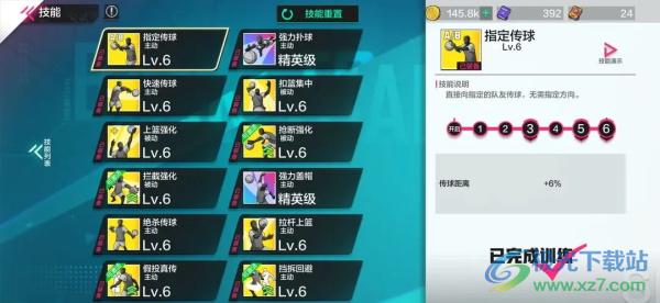 8、推荐玩家主动技能选择“扑球+传球快速跑动+指定传球+突破变向+后仰投篮”;被动技能点选“拦截强化+抢断强化”。这套组合招数可以在传球与直投之间灵活调整,引领你的队伍轻松抢分取胜。