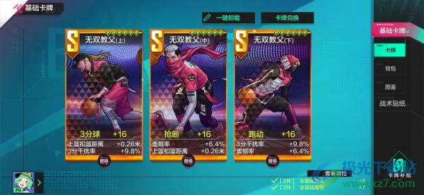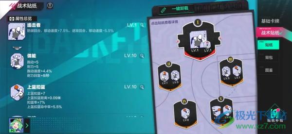 5、在贴纸的选择上,追击者和体能是一定要的,剩下的一个进攻就选上篮扣篮,防守则选干扰。