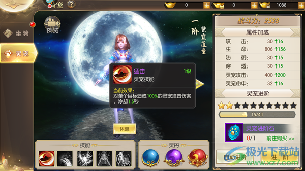 4、灵光:灵宠的攻击间隔,缩短至1秒,提高攻击频率,持续造成伤害。