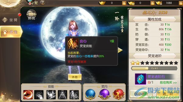 5、会心:灵宠的会心一击概率提升20%,提高其爆发伤害的能力。