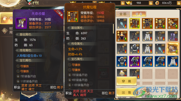 1、伏魔仙履:靴子,适合真人,魂师,武师,法君,天卫职业,为玩家增加大量生命值以及防御力。