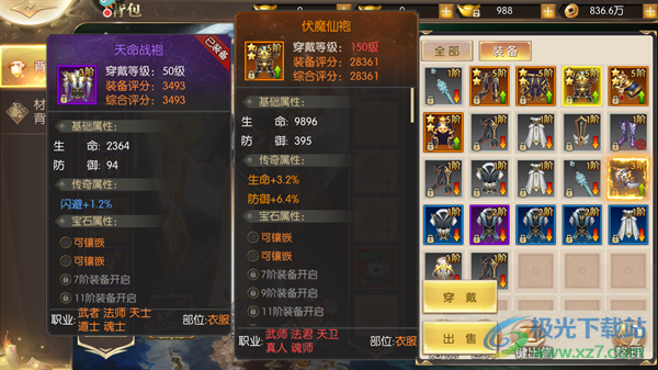 3、伏魔仙袍:衣服,适合真人,魂师,武师,法君,天卫职业,为玩家增加巨额生命值以及防御力。