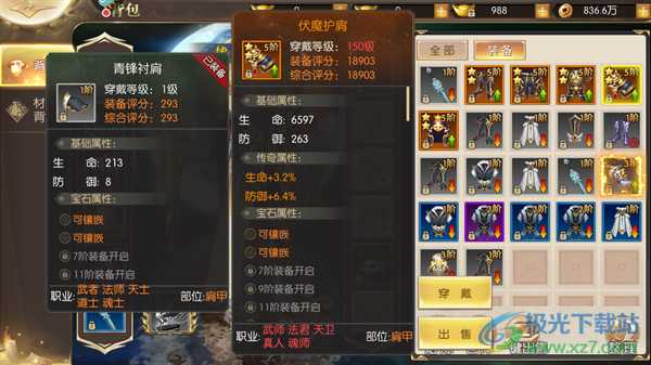 4、伏魔护肩:肩甲,适合真人,魂师,武师,法君,天卫职业,为玩家增加大量生命值以及防御力。