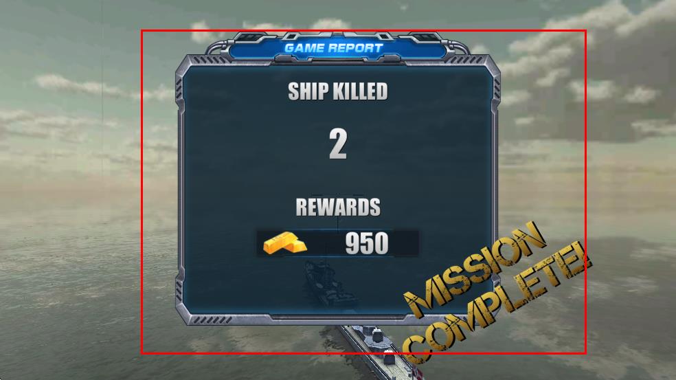 4、成功击沉指定数量的敌方船只后,游戏界面显示“MISSION COMPLETE!”,完成任务并获取奖励。