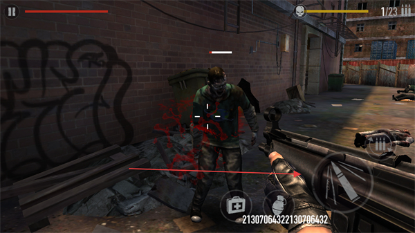 3、近距離遭遇僵尸,保持冷靜,持續射擊,留意自身生命值和子彈量。