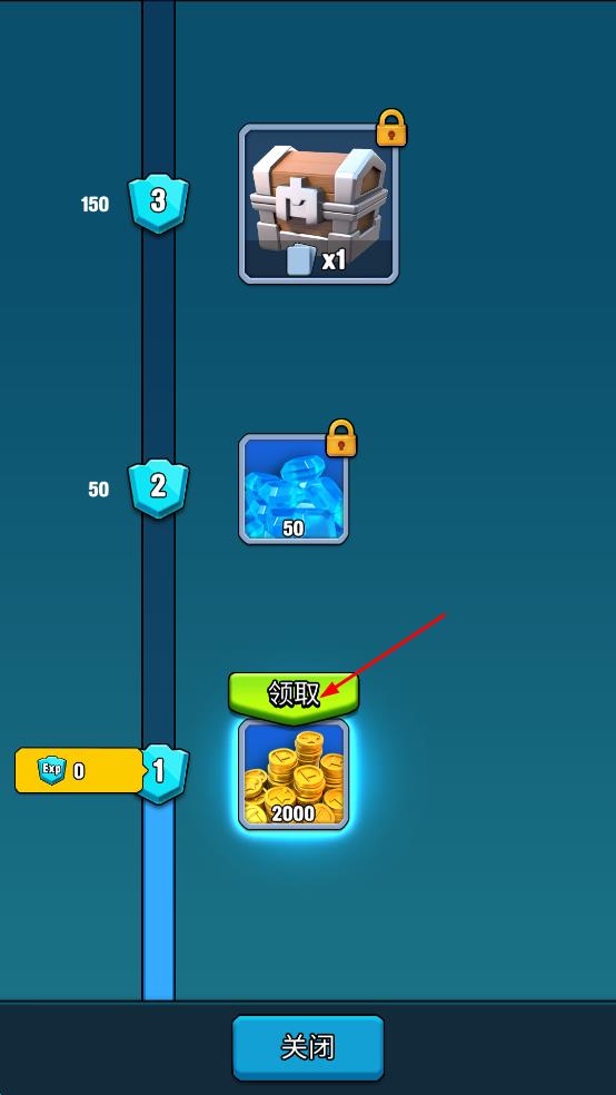 4、在经验值相关页面,点击“领取”按钮,获取对应奖励,然后可继续进行游戏其他操作。