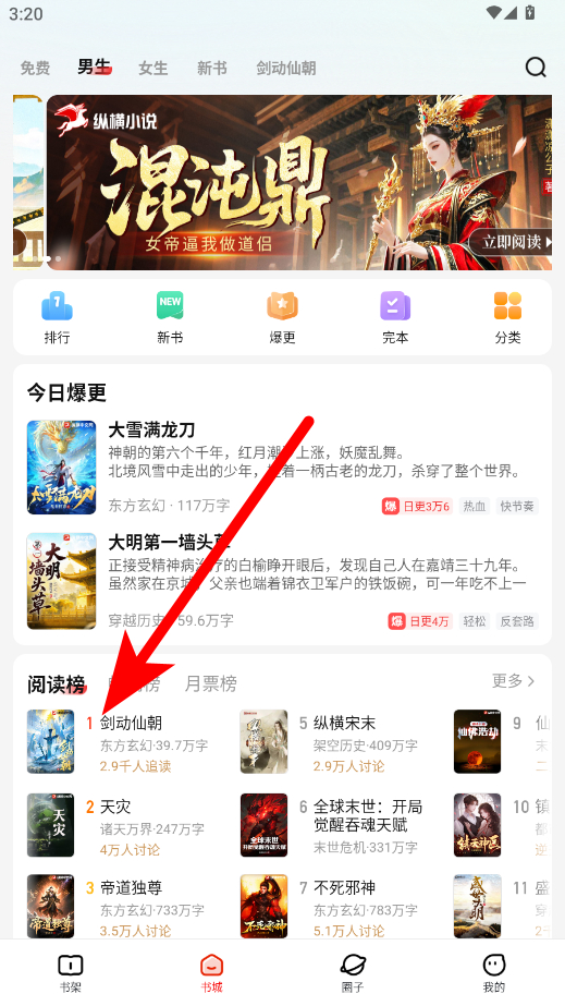 1、打开纵横小说APP,在书城页面找到想查看目录的小说并点击进入。