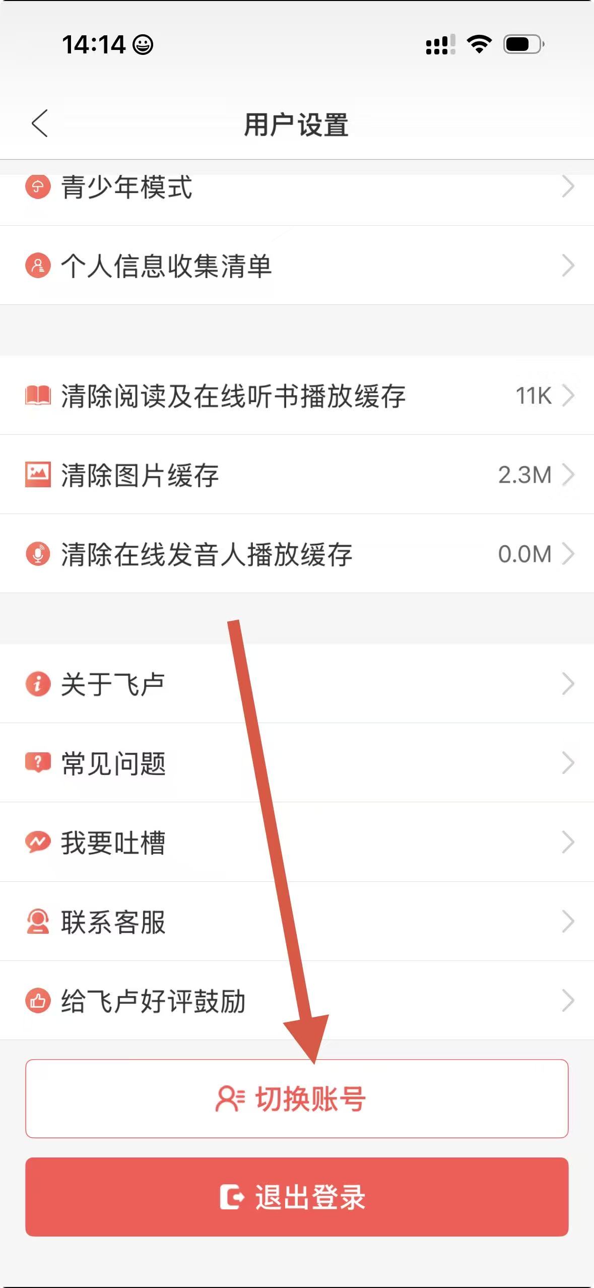 3、在用户设置页面,点击切换账号选项,进入账号切换界面。