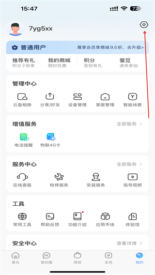 1、启动萤石云视频APP,在首页右下角点击我的功能图标。
